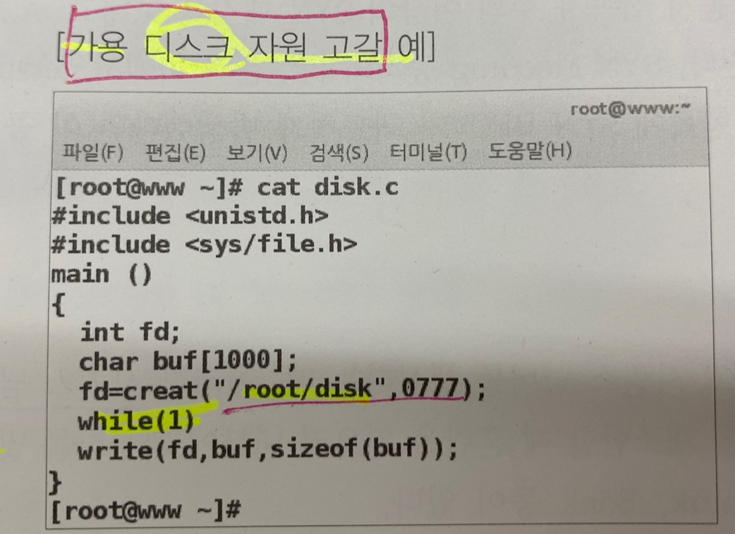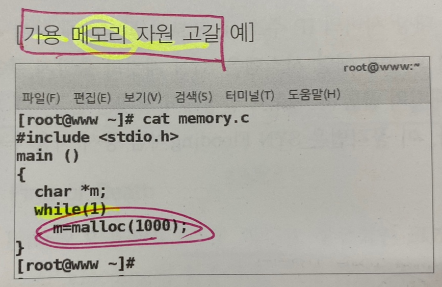 2) 가용 메모리 자원 고갈 * mallac ()와 관련