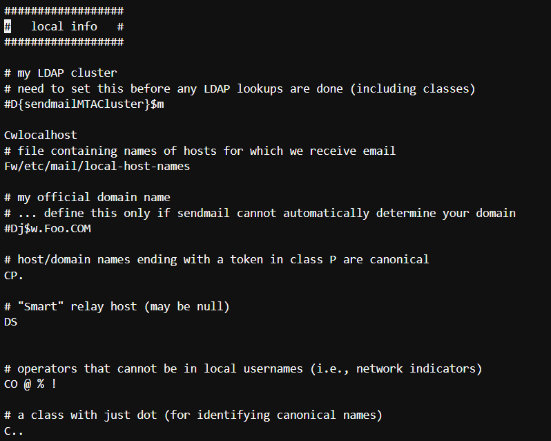 - sendmail 관련 설정 파일들은 모두 /etc/mail 밑에 생성되어 있으며, 그 중 가장 중요한 주 설정 파일이 sendmail.cf 이다.