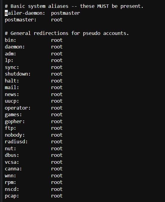 - /etc/aliases 파일의 설정이 적용되도록 해당 명령어로 실행한다.