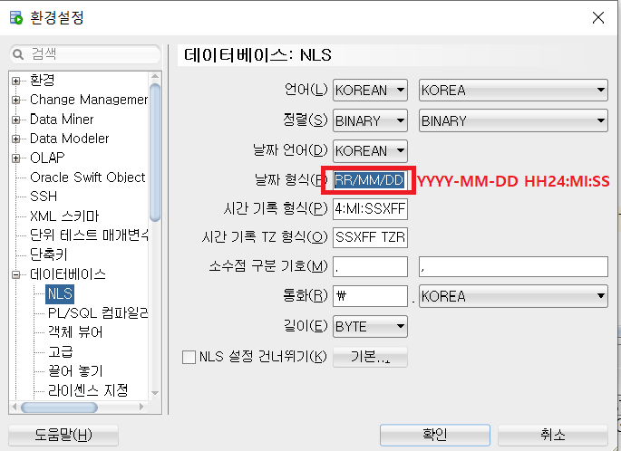 2. 데이터베이스 > NLS > 날짜 형식 변경 > 확인
