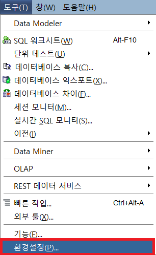 1. 상반바 메뉴바에서 도구 > 환경설정 클릭