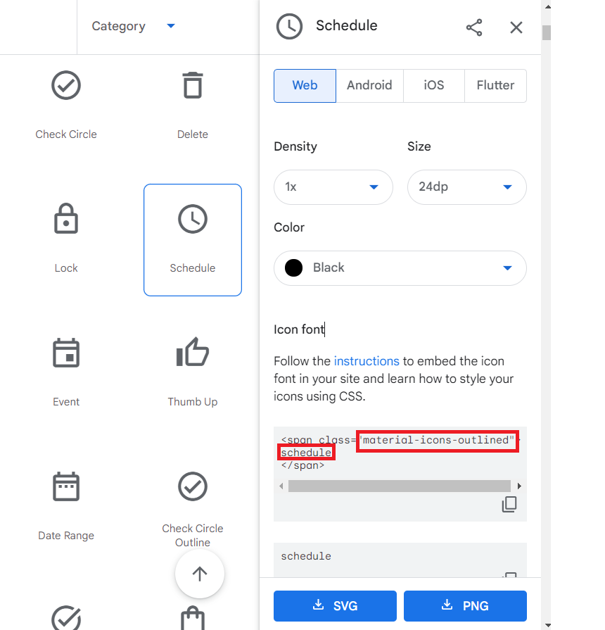 사용할 아이콘을 고르고, class = matrial-icons 로 지정