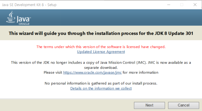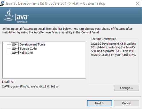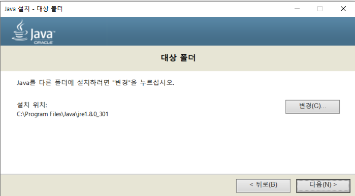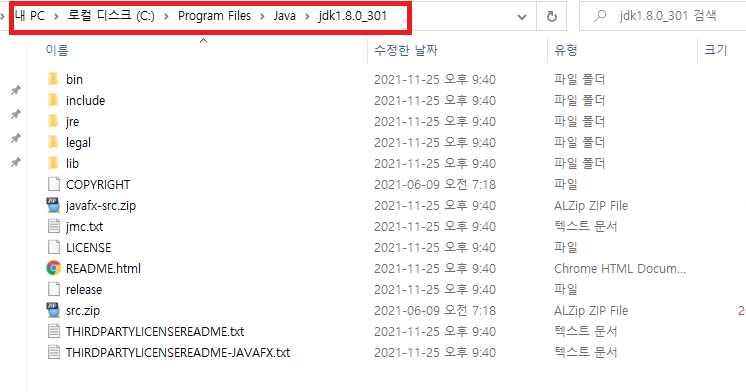 기본적으로 JDK C:\Program Files\Java\jdk1.8.0_301 경로에 설치되어진다.