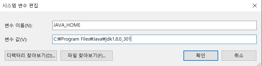 변수 이름은 JAVA_HOME 으로 지정하고, 아까 설치한 JDK 경로를 복붙한다.