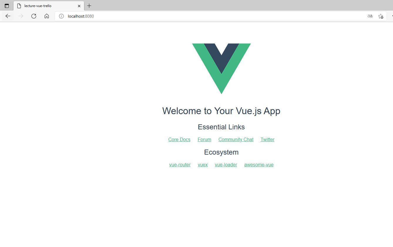 개발 서버를 기동하면 localhost:8080 브라우저로 vue기본 페이지를 확인할 수 있다.