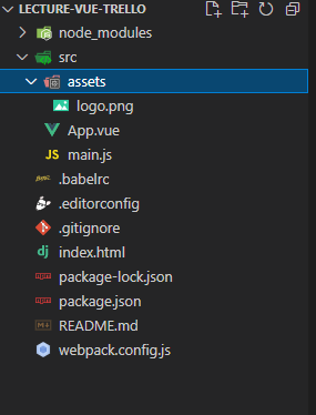 이렇게 모두 설치가 끝나면 관련 폴더와 파일들이 기본적으로 만들어진다. webpack.config.js, .babelrc 등의 파일이 webpack으로 설치가 된 걸 확인 할 수 있다.