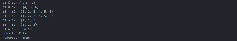 print('s1 & s2 : ', s1.isdisjoint(s2))