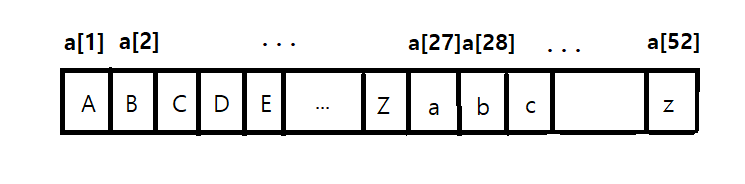 a라는 배열 1번부터 26번째까지 알파벳 대문자 A부터 Z까지 담고, 27번째부터 52번째까지 소문자 a부터 z 의 개수를 담는다.
