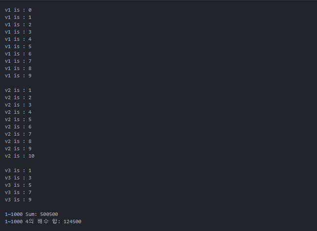 for v1 in range(10): # 0~9 까지
