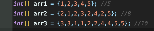int[] arr3 = {3,3,1,1,2,2,4,4,5,5}; //10