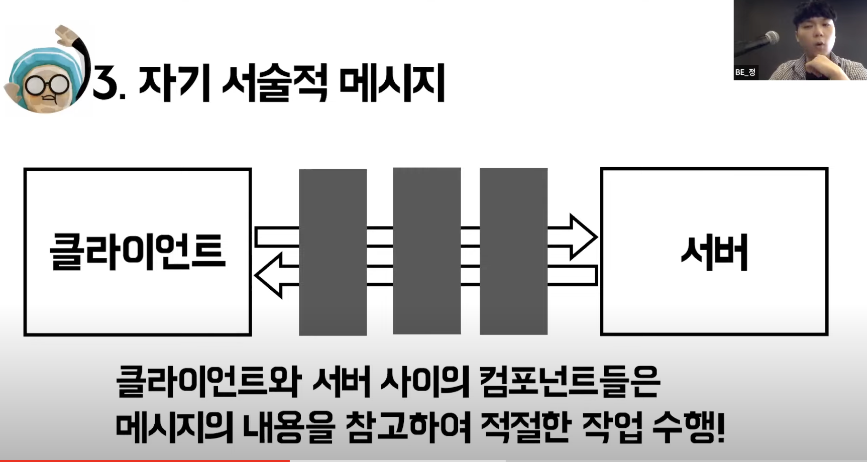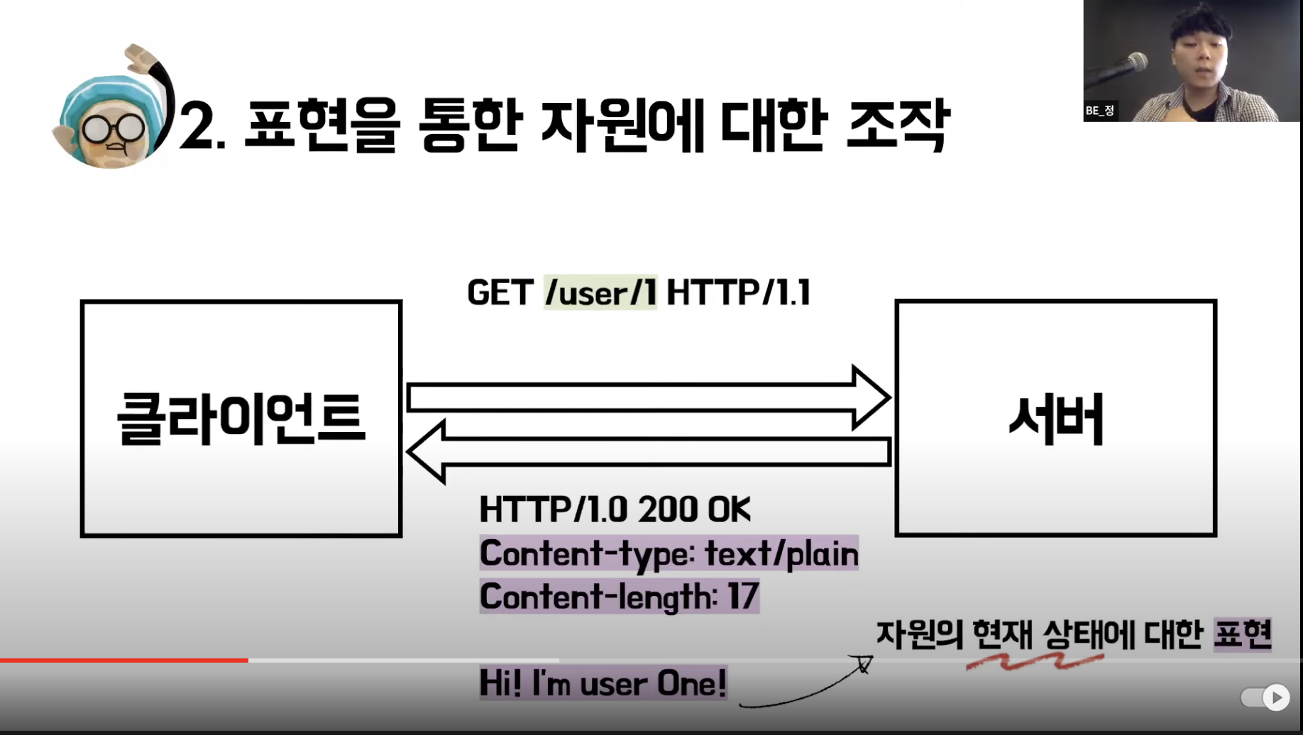 클라이언트 <-> 서버 자원의 상태 정보를 전달한다