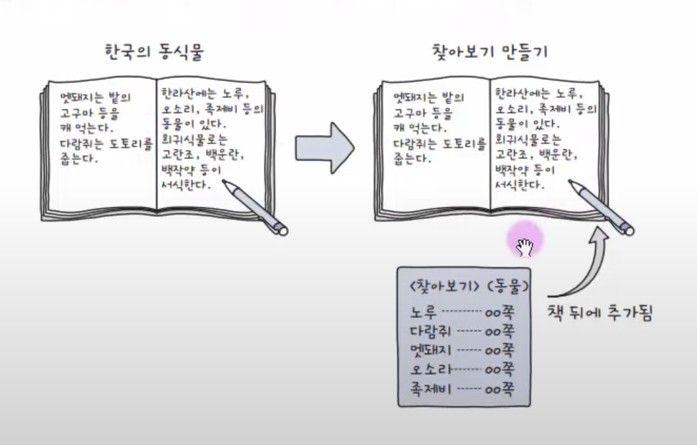 - 일반적으로 책의 색인이라고 생각하면 됨