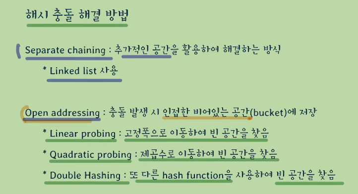 해쉬 테이블은 무엇인가요? 해쉬값이 충돌하면 어떻게 해결할 수 있을까요?