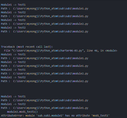 상대경로: ..(부모 디렉토리), .(현재 디렉토리) -> 모듈 내부에서만 사용