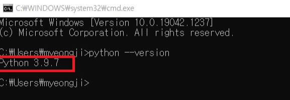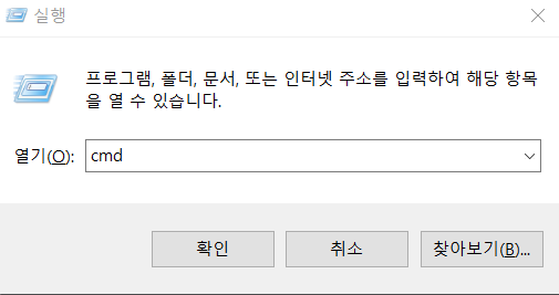 파이썬 설치가 완료된 것을 확인하기 위해 cmd 창을 엽니다.