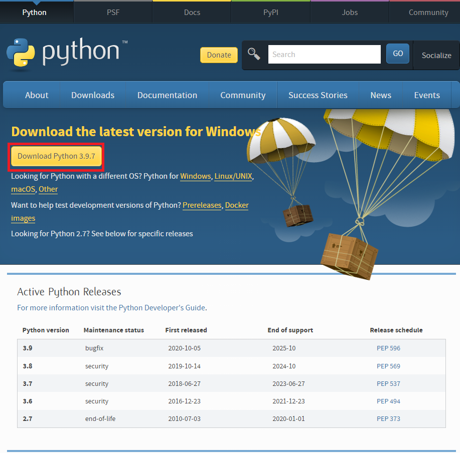 파이썬 최신 버전 download 후 파이썬 exe파일을 다운받습니다.