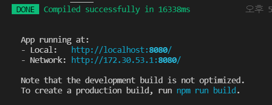 개발 서버 띄워서 브라우저 화면을 확인해보도록 하겠습니다.