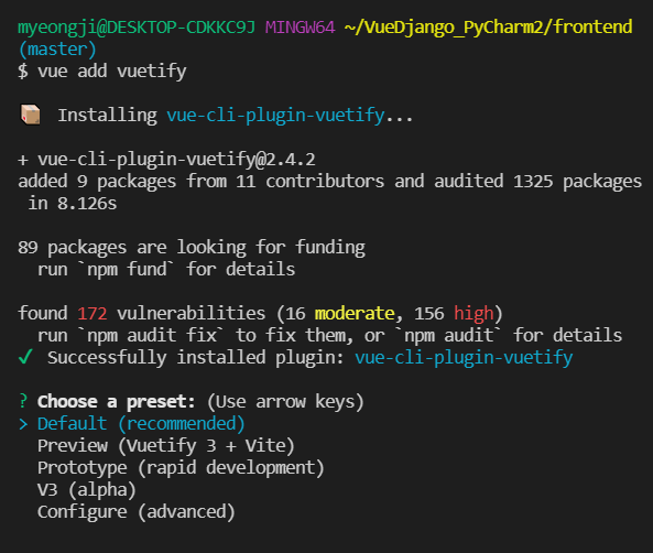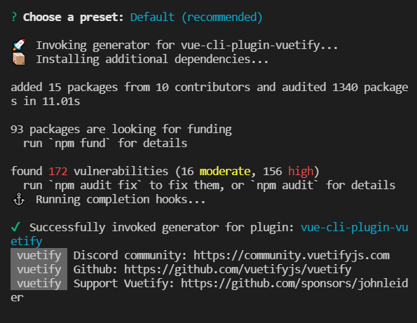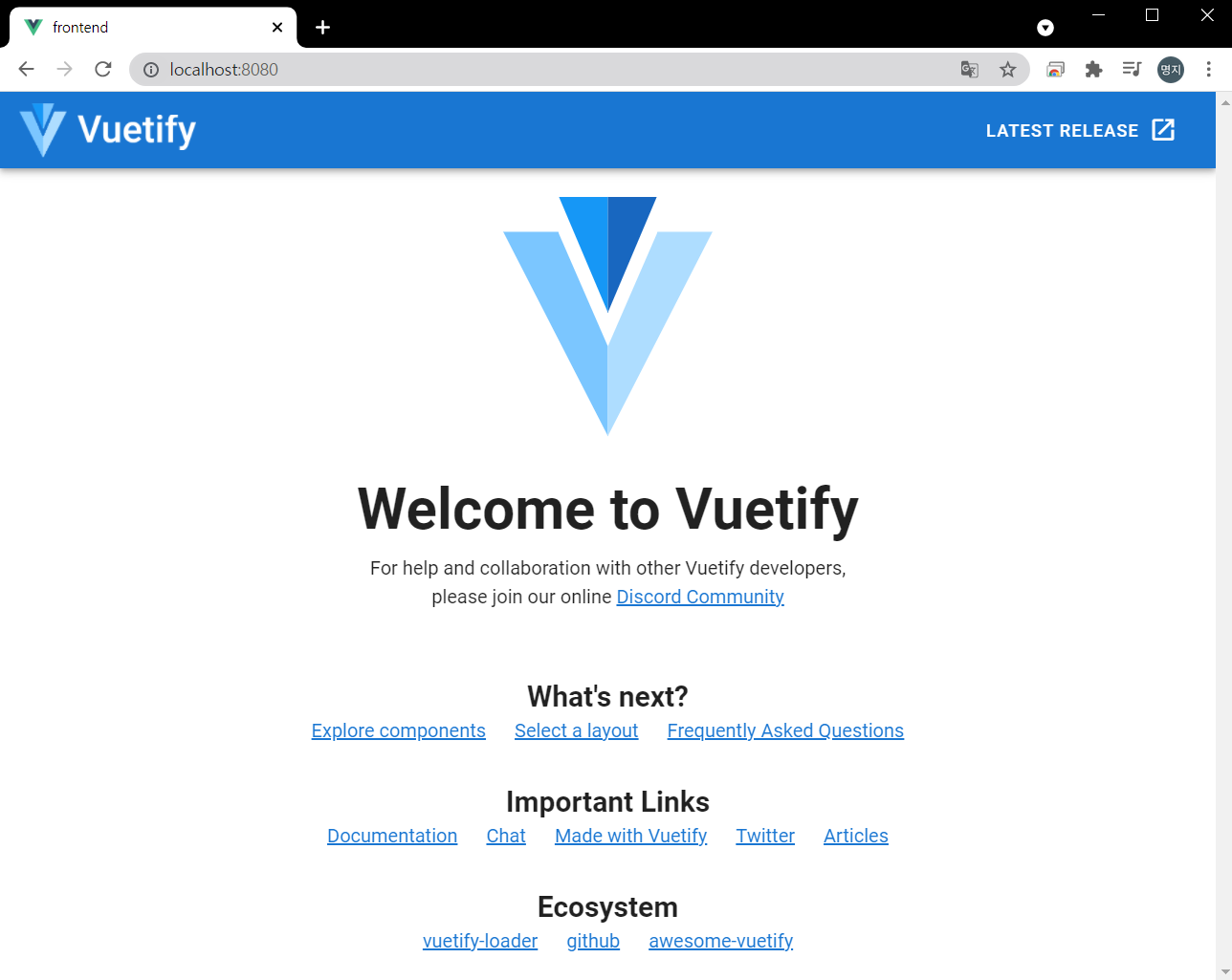 이러한 화면이 뜨면 vuetify 가 성공적으로 설치가 완료된 것입니다.