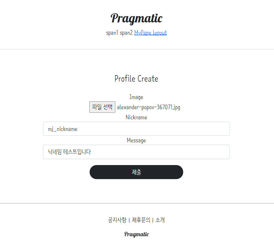 - 이미지, 닉네임, 메시지 입력하는 form 페이지 구현