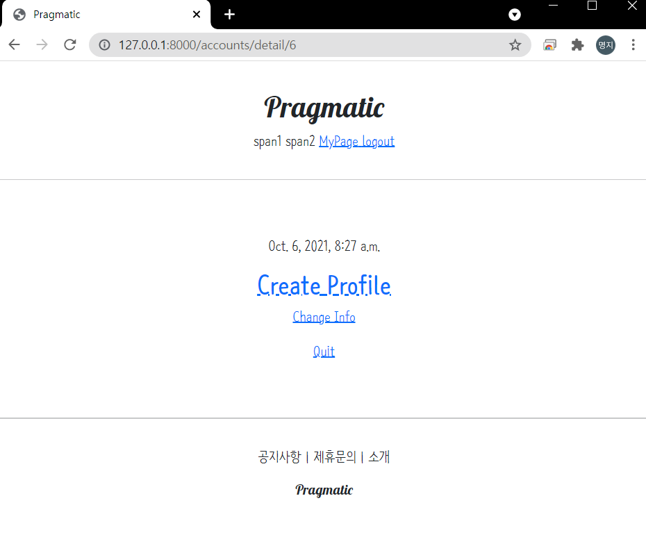 - 유저가 profile 생성했으면 nickname 출력, 생성하지 않았으면 Create profile 링크 연결