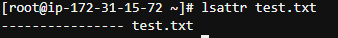 vi 편집기를 사용해 test.txt 파일을 임의로 생성하고 lsattr 명령어를 실행시킨다.