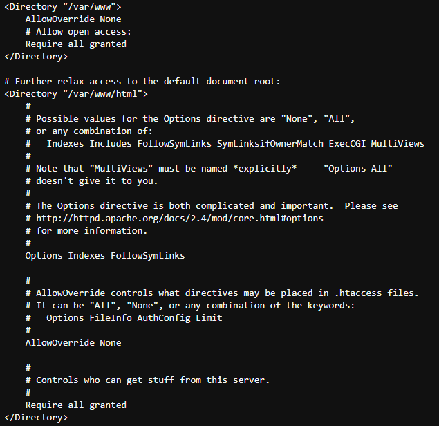 - DocumentRoot 라인 이후에 <directory> 지시자가 작성된다.
