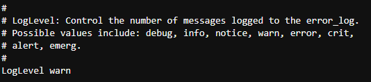 - 레벨은 debug, info, notice, warn, error, crit, alert, emerg 가 있고, 기본으로 warn으로 설정되어 진다.